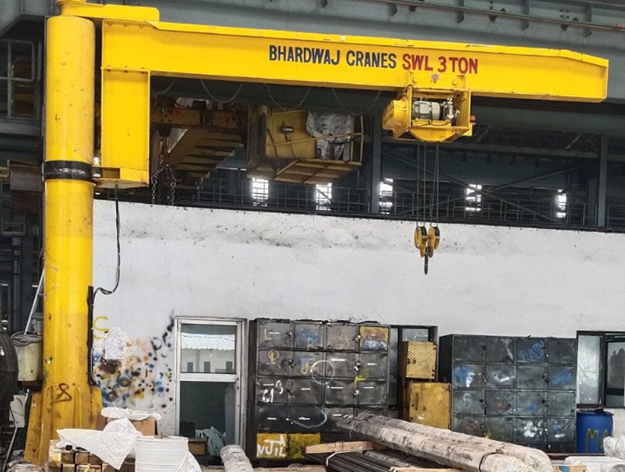 Jib cranes are efficient material handling solutions mainly used in machine shop and loading the raw material on variety of CNC machines. They offer a wide span range of 5 meter and 360-degree rotation which makes easier and production efficient. They comes in manual & automatic rotation along with manual & electric wire rope hoists. Jib Cranes provide dedicated work space for individual machines and reduce manual lifting and increase the operator safety.