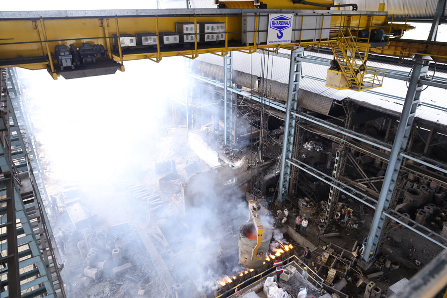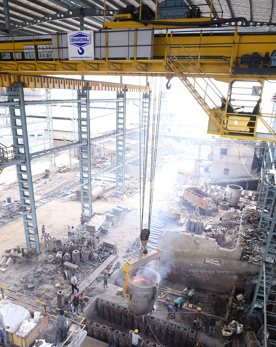 Ladle handling E.O.T. cranes are special purpose crane for furnaces & foundries and used mainly to pour the molten metal form with the help of ladle. These cranes are designed as per IS 3177 & IS 807 and slipring motors are used. These cranes usually come with auxiliary hoists. These cranes have high thermal stability and excellent braking system and made for high temperature application area.